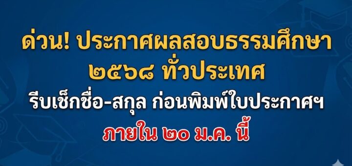 ด่วน! ประกาศผลสอบธรรมศึกษา ๒๕๖๘ ทั่วประเทศ รีบเช็กชื่อ-สกุล ก่อนพิมพ์ใบประกาศฯ ภายใน ๒๐ ม.ค. นี้