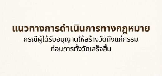 - ขั้นที่ ๓ การรายงานขอยกสถานะ: เมื่อมีความพร้อมตามเกณฑ์ที่กำหนดครบถ้วน (เสนาสนะเสร็จสมบูรณ์ และมีพระภิกษุจำพรรษาครบ ๔ รูป) ให้ยื่นรายงานขอยกวัดร้าง (แบบ ศถ.๑๑)