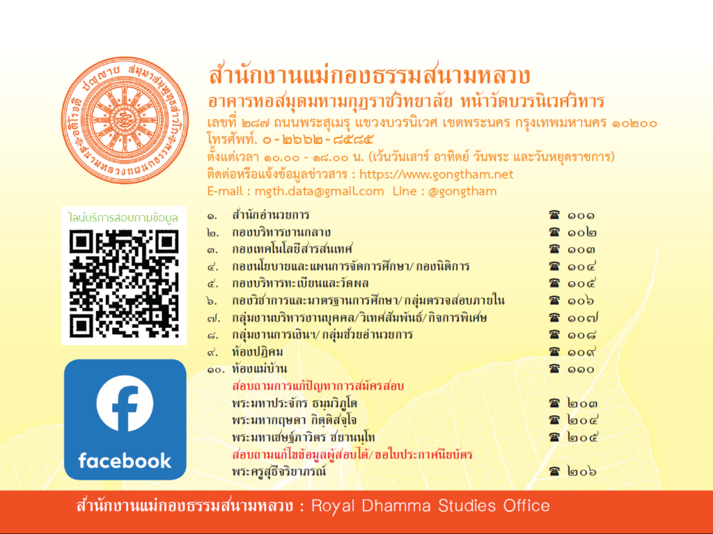นอกจากนี้ หากสนามสอบต้องการข้อมูลเพิ่มเติมหรือคู่มือเกี่ยวกับการใช้งานระบบสนามสอบของแม่กองธรรมสนามหลวง สามารถศึกษารายละเอียดและขั้นตอนต่าง ๆ ได้จากลิงก์คู่มืออย่างเป็นทางการ คือ https://it.gongtham.net/maegongtham-exam-center-system-guide/ ซึ่งจะช่วยให้การบริหารจัดการข้อมูลและการส่งผลสอบเป็นไปอย่างถูกต้องรวดเร็ว