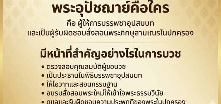 ในกระบวนการบรรพชาอุปสมบทตามระเบียบแบบแผนของคณะสงฆ์ไทย “พระอุปัชฌาย์” ถือเป็นตำแหน่งที่มีความสำคัญอย่างยิ่งในฐานะผู้คัดกรองบุคลากรเข้าสู่ร่มกาสาวพัสตร์ บทความนี้จะนำเสนอความรู้เชิงลึกเกี่ยวกับบทบาท หน้าที่ และกฎเกณฑ์ที่เกี่ยวข้องกับพระอุปัชฌาย์ เพื่อสร้างความเข้าใจที่ถูกต้องตามหลักพระธรรมวินัยและกฎมหาเถรสมาคม
