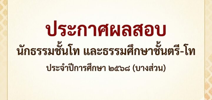 สำนักงานแม่กองธรรมสนามหลวง ประกาศผลสอบนักธรรมชั้นโท และธรรมศึกษาชั้นตรี-โท ประจำปีการศึกษา ๒๕๖๘ (บางส่วน)