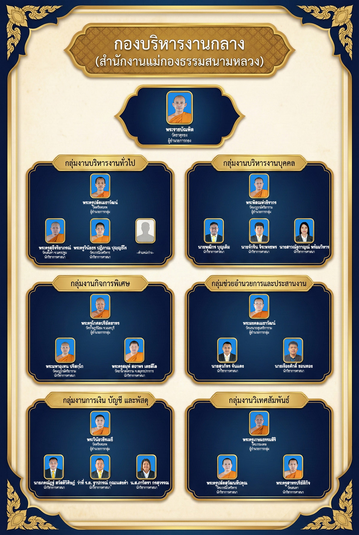 โครงสร้างและทำเนียบบุคลากร กองบริหารงานกลาง สำนักงานแม่กองธรรมสนามหลวง