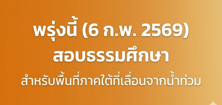 พรุ่งนี้ (6 ก.พ. 2569) สอบธรรมศึกษา สำหรับพื้นที่ภาคใต้ที่เลื่อนสอบจากเหตุน้ำท่วม