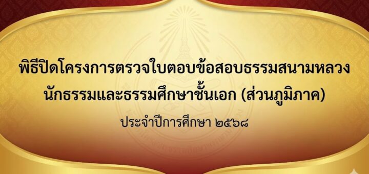 พิธีปิดการตรวจใบตอบนักธรรมและธรรมศึกษาชั้นเอก ส่วนภูมิภาค ประจำปี ๒๕๖๘ ณ วัดสามพระยา วรวิหาร
