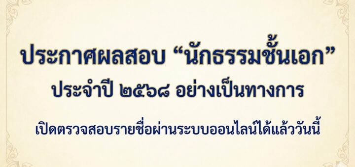 ประกาศผลสอบ “นักธรรมชั้นเอก” ปี ๒๕๖๘ เปิดตรวจสอบรายชื่อ-แจ้งแก้ไขคำสะกดผิด ด่วนภายใน ๒๐ ม.ค. นี้