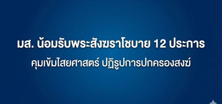 เมื่อวันที่ 9 มกราคม พ.ศ. 2569 ณ ตำหนักเพ็ชร วัดบวรนิเวศวิหาร ได้มีการประชุมมหาเถรสมาคม (มส.) ครั้งที่ 1/2569 ภายหลังการประชุม นายชัชพล ไชยพร นักวิชาการศาสนาเชี่ยวชาญ รักษาราชการแทนผู้อำนวยการสำนักเลขาธิการมหาเถรสมาคม เปิดเผยว่า ที่ประชุมมหาเถรสมาคมมีมติเห็นชอบน้อมรับพระสังฆราโชบายในเจ้าพระคุณ สมเด็จพระอริยวงศาคตญาณ สมเด็จพระสังฆราช สกลมหาสังฆปริณายก เพื่อกิจการคณะสงฆ์และพระพุทธศาสนา ประจำปีพุทธศักราช 2569 จำนวน 12 ประการ มาเป็นนโยบายหลักในการขับเคลื่อนงานคณะสงฆ์ โดยมีสาระสำคัญที่น่าสนใจเกี่ยวกับการควบคุมกิจกรรมที่บิดเบือนจากหลักพระพุทธศาสนา และการปฏิรูปการบริหารงานบุคคลของคณะสงฆ์ ดังนี้