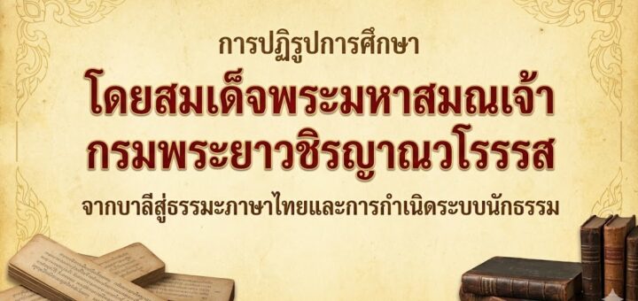สมเด็จพระมหาสมณเจ้า กรมพระยาวชิรญาณวโรรส ทรงเป็นผู้ปฏิรูปโครงสร้างการศึกษาพระปริยัติธรรมของคณะสงฆ์ไทยครั้งสำคัญ จากระบบที่เน้นบาลีแบบเดิม สู่หลักสูตรที่เปิดกว้างโดยเน้น “ธรรมะภาษาไทย” ควบคู่กับการศึกษาภาษาบาลี