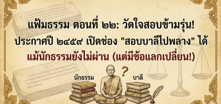 เอกสารจดหมายเหตุเกี่ยวกับการสอบธรรมสนามหลวง ประจำปีพุทธศักราช ๒๕๐๐ (ค.ศ. 1957) ถือเป็นหมุดหมายทางประวัติศาสตร์ที่สำคัญยิ่งของวงการศึกษาคณะสงฆ์ไทย ไม่เพียงเพราะเป็นปีแห่งการเฉลิมฉลองกึ่งพุทธกาล แต่ยังเป็นปีที่มีการ “ปฏิรูปวิธีวัดผล” ครั้งใหญ่ที่สุดครั้งหนึ่ง ซึ่งเปลี่ยนกระบวนทัศน์จากการ “จับผิด” มาสู่การ “วัดความรู้” ตามมาตรฐานสากล บทความนี้จะพาท่านย้อนกลับไปสำรวจความเปลี่ยนแปลงดังกล่าว ท่ามกลางการเติบโตอย่างก้าวกระโดดของจำนวนผู้ศึกษาธรรม